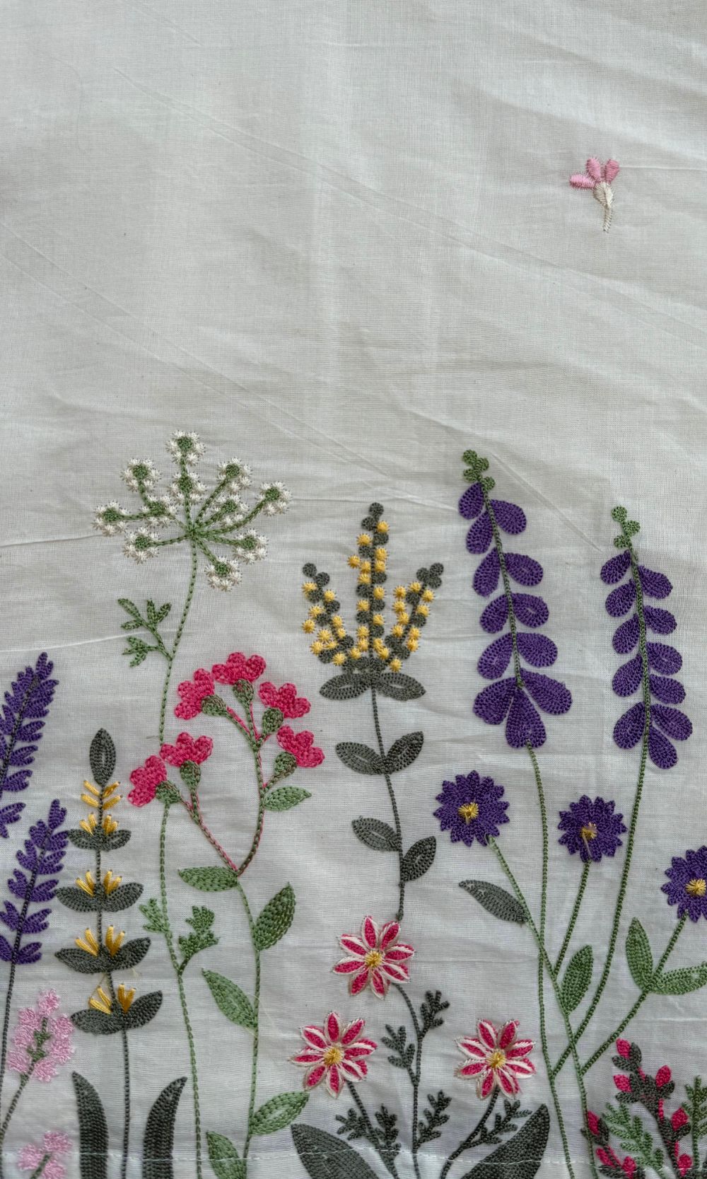 Description: This beautiful White kurta palazzo co-ord set features delicate multi-colour floral embroidery along the hemline and scattered floral motifs on the front, adding a soft, graceful charm. Designed with a round neckline and 3/4th sleeves, this kurta offers a simple, elegant silhouette. Made from breathable cotton fabric, it’s perfect for daily wear and casual occasions.